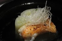 Charcoal grilled "Kinki" in premium "Ichiban Dashi" soup (引き立て一番出汁への想い 炭火焼 きんきのお椀) - I looove broadbanded thornyhead/kinki (喜知次) as it's one of the most succulent and tender fish from Japan. Tonight they grilled it with binchotan (備長炭) and I definitely got a whiff of the charcoal nose. Love the Japanese leeks and the piece of winter melon. Of course the 一番出汁 was really yummy.