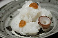 Octopus (鮹) - I've never had octopus this way… sliced, scored and then blanched in a shabu shabu (しゃぶしゃぶ)… with sauce made with ground radish that was both spicy and sour. Very nice.