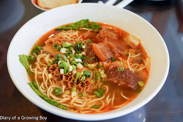 Braised beef noodles with three treasures (紅燒三寶麵) - the three treasures are beef, beef tendon, and honeycomb beef tripe. I thought the soup base was just OK - it was neither very rich nor very bland. The noodles were very thin, and lacked any bite that I was looking for.