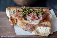 The second part of the dish was when the "leftover" caviar was served to us on sourdough bread - along with the cured Galician beef. As the others mentioned, this was very, very evil... and took up a good amount of valuable real estate in my stomach.
