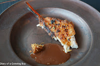 Underneath the collection of morning glory, cabbage, sorrel, and spinach was, in fact, bone marrow soufflé. The creamy and foamy sauce that was spooned on top was made of clams, seafood and parsley oil. Pretty interesting, but slightly on the salty side.