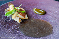 The scallops were beautiful, as was the crunchy shell. The seaweed brought its own umami to the dish. Served with celeriac purée and some scallop foam. There were four happy campers here after this.