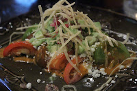 Guacamole and salsas: fresh daily-made guacamole and salsas, organic stone ground chips - no surprise that this was the first item to arrive at our tables. The chips were pretty tasty, and fairly bland until you hit one of the grains of salt. The guacamole was not bad, but I thought the salsa was a real winner.