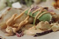 Fish taco - not a fan. The little piece of fish was dipped in what looked like tempura batter and deep-fried. I didn't understand why there were pieces of potato. The fish taco at Ted's Lookout was waaaaay better.