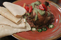 Madera pollo: citrus-brined chicken, pico de coliflor, salsa verde, grilled spring onion - meh. The chicken was definitely overcooked and dry. I sliced up chunks and put them on the tortillas. I definitely didn't need the baked beans…