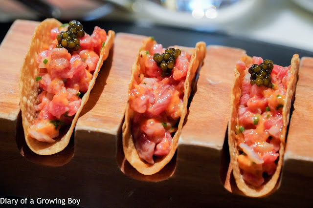 Kobe and sea urchin crunchy tacos - I ordered this because this is the kind of stuff that we see more and more of on menus: chefs throwing together luxury ingredients just to impress diners. Here we've got premium Japanese beef, sea urchin, and caviar. These tacos tasted fine, but not earth-shattering.