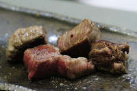 A5 Japanese premium beef (特選A5黒毛和牛) - much better since this was done as "medium rare", and more marbled.