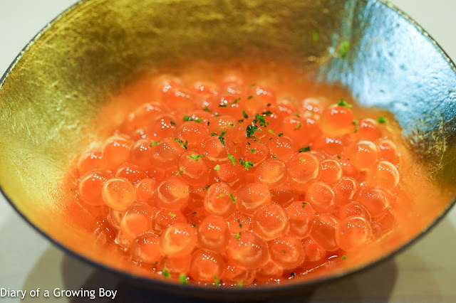 Salmon roe (イクラ) - absolutely delicious way to start lunch. So light and delicate. So much umami. Wonderful with a touch of fragrance from the yuzu zest shavings.
