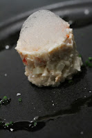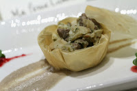 Baked pigeon pastilla on mushroom sauce - not quite the pastilla that I was expecting, but this was nevertheless reasonably tasty, with classic chopped almonds and Mediterranean spices among the diced pigeon and mushrooms. The aubergine sauce on the side was nice, too.