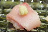 Chef selection sashimi platter (造り) - there were four different types of sashimi. Of course I chose to give up my pieces of fatty tuna (トロ) to the others...