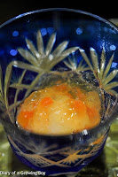 Kobako crabmeat with julienne (先付:香箱蟹 ジュレ掛け) - it's that time of the year again... when we get these snow crabs (ズワイ蟹) laden with goodies - crab meat, tomalley (蟹味噌), ovaries (内子), and eggs (外子). All covered in a layer of jelly scented with shaved yuzu (柚子) zest. Wonderfully refreshing and packed with flavors.