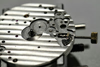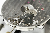 After putting in the yoke and the yoke spring - the latter of which was particularly difficult as the little bugger has a tendency to fly off - we add the minute wheel, and setting lever jumper on top to secure the yoke spring. The crown can now be pushed and pulled to set the time.