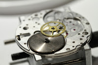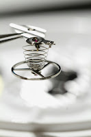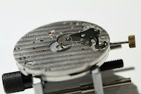 Well, I went back to my station and promptly forgot everything Gianfranco said. I didn't immobilize my right arm and introduced horizontal in addition to vertical movements. But as luck would have it, I think I got it after a minute or so. Miraculously, the second I dropped the assembly into place the balance wheel started turning, as energy stored in the barrel was released. In our little unspoken competition, I finished only shortly after Mrs. Tigger.