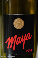 1993 Dalla Valle Maya - more closed than the '97. A little more dry on the palate at first, but later on showed a little ripeness, and more woodsy notes. Half an hour after serving this turned very smoky. 94 points.
