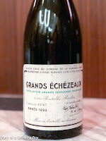 1993 DRC Grands Echezeaux - more powerful with a much bigger nose of leather. Stemmy and almost a bit stinky. A hint of savory black olives, then a bit of green pepper. 95 points.