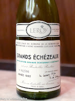 1982 DRC Grands Echezeaux - beautiful and floral nose, fruity and elegant, with intense sweetness almost like honeydew. Slightly less elegant after a few minutes in glass, but still great. 97 points.