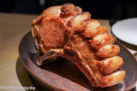 Noir de Bigorre pork chop from Neighborhood, Hong Kong - the beautiful hunk of fatty pork was chopped up and served with rice pilaf mixed together with boudin basque, morels, and a creamy sauce. Simply out of this world!