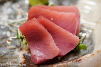 Japanese tuna (本生マグロ), from Aomori Prefecture (青森県) - this came from the waters around Japan, and we were asked to take it with sea salt and mustard and not soy sauce with wasabi.
