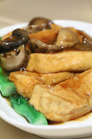 Braised tofu with black mushrooms (紅燒豆腐) - the Tiggers' go-to dish at just about every Cantonese restaurant. I tried in vain to scrape off the layer of starchy "brown sauce" covering the tofu pieces…