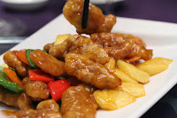 Sweet and sour pork with pineapple (菠蘿咕嚕肉) - FLM always had one of the best versions of sweet and sour pork in town, and it looks like the chefs here also do an awesome job. Yes, it's bad for my diet because it's deep fried, with batter, and with that thick, starchy sauce. But it was so damn good I had to take more than one piece… or was it three? And of course it was only natural for Pineapple to photo bomb my pic of the dish with pineapple…