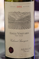 1994 Araujo Cabernet Sauvignon Eisele Vineyard - metallic, mineral, herbs, sweet, alcoholic, a little chalky on the nose, and slightly off on the palate.