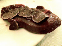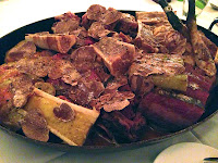 Of course I decided to pick some of the richest ingredients out of the pan… Bone marrow was of course the first thing I dug into, with all that gooey, solid fat that was being liquefied; a piece of foie from the whole thing; and finally a tender piece of ox tongue. Let's not forget to add a few slices of white truffle!