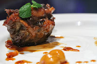Candied lotus root with osmanthus and foie gras (桂花糖藕配鹅肝) - this was actually pretty interesting. Shaved slices of foie gras terrine, paired with Shanghainese-style lotus root which wasn't as sweet as I'm used to. Usually you have the osmanthus marinated in the honey sauce, but here the kitchen uses fresh flowers, which delivered more intense flavors and fragrance. Very nice. I actually didn't realize that I'd already tried this at the dinner last year.