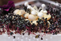 Black caviar and vegetable with mushroom salad (春草黑鱼籽蘑菇沙拉) - OK, it was my fault for ordering something that looked pretty in the picture, and the actual presentation - with dry ice and all - fell short of expectations. It was also incredibly bland, as the only "seasoning" came in the form of a measly few caviar eggs. Otherwise the mushrooms and the microgreens (red sango radish?) were pretty tasteless. We were given a pair of small scissors, and had to cut the microgreens from the sheet of cotton (which looked like the cotton pads used to remove makeup) ourselves before being able to eat them.