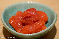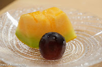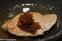Monkfish liver - very, very tender as expected. The sweetness from the sauce was nicely balanced by the savory notes from the diced pickled watermelon skin (西瓜奈良漬け).