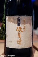 Isojiman Nakatori Junmai Daiginjo 35 (磯自慢 中取り 純米大吟醸 35), 2014 - initially nose was not very open, a little spicy, not quite green. Very smooth on the palate, soft and almost a little viscous. Second pour was colder, around 10°C. More banana notes. Sharper on the palate, and really nice. Later on this was more like koshu (古酒).