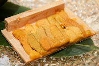 Pink sea urchin (赤雲丹) - from Karatsu (唐津). Taken with a tiny pinch of salt to bring out the sweetness.