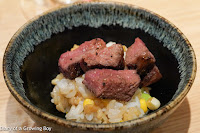 Chateaubriand and clay pot rice with corn and edamame - I was really looking forward to this. The beef came from a "local" (read: Chinese) steer instead of some fancy schmancy imported Japanese beef with more marbling.