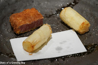 Hida beef chateaubriand with white asparagus - the German white asparagus was fairly juicy, but initially I thought it was a little too fibrous. The batter seemed to have a tendency to slip off the asparagus like a used condom, though...