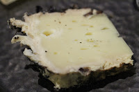 Tomme de Chèvre de Savoie - pretty strong. There is a layer of grape must on top.