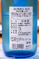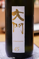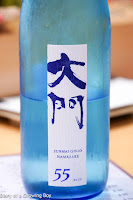 Daimon 55 Blue Junmai Ginjo Nama (大門55 Blue 純米吟醸 生酒) - seimaibuai (精米歩合) of 55%. This was more complex than I expected, more fermented flavors with depth. A little savory umami upfront, sweet in the middle, with a slightly spicy finish.