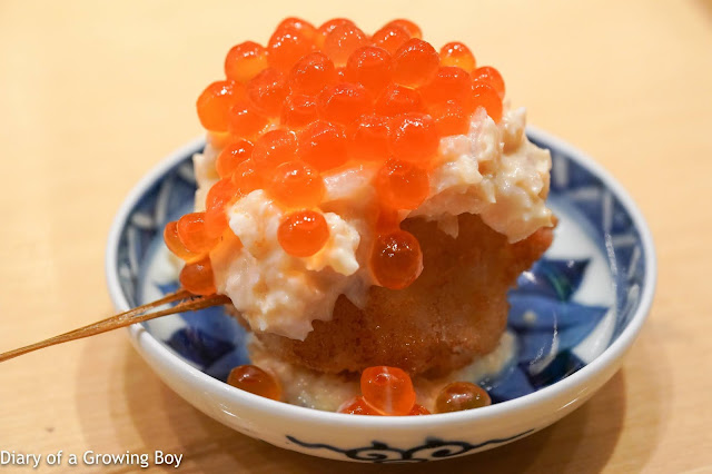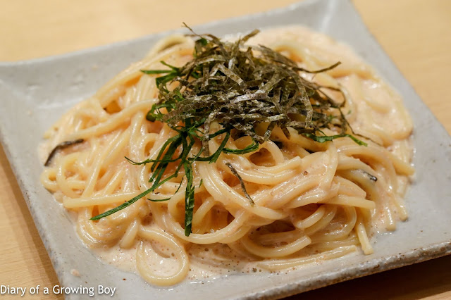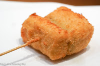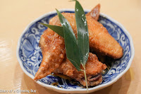 Okizuke firefly (ほたるいか沖漬け) Fried chicken wing (手羽唐揚げ) - this is something that one must order here... that bright acidity just gets my taste buds going. Ponzu sauce chicken skin (鶏皮ポン酢) - Hello Kitty really like this dish. I have always liked chicken skin since I was a young kid, so I was cool with this. One bite cheese fried (一口チーズフライ) - such a humble dish, but I just loooove these fried wedges of Camembert. Raw oyster (生かき) - the oyster from Hyogo Prefecture (兵庫県) was very fat, creamy, with a little brine. Fried veggie fish cake (野菜のさつま揚げ) - texture was softer and more moist than I had expected. Nice. Sand borer (きす) - I always enjoy sillago (鱚) here. Scallop salmon roe (ほたてタルタルいくら) - how could I come here and not order my favorite?! Yes, the deep-fried scallop is always great, but it's the tartar sauce with its acidity that really makes this sing... And the salmon roe don't hurt. Crab leg (かに足) - this was so, sooo tasty! And paired perfectly well with the Daimon 45. Daimon 45 Junmai Daiginjo (大門45 純米大吟醸) - seimaibuai of 45%. This definitely tasted like shellfish, as if I were eating crab. Kinda sweet on the palate. Celery pork flank roll (豚バラセロリ巻) - I was pleasantly surprised by how good this combination was. Might have to order it again. Herring roe on kelp (子持ち昆布) - another one of my favorites. I loooove the crunch as I bite into this cube... and how it springs back when slowly loosen the pressure from my teeth. Cold tomato (冷トマト) - it's good to have a refreshing palate cleanser in the midst of all this deep-fried, greasy food. Sweet potato fries (フライドさつまいも) - another perennial favorite. The crunchy exterior is always good, and the sprinkle of toasty sesame seeds scores brownie points. Conger eel (穴子) - SLURP. At this point I kinda went berserk. I had seen been missing the carb dishes that they are famous for, and I decided to order up NOT ONE, NOT TWO, BUT THREE of these babies... on the assumption that they will be shared with the others. Spicy cod roe pasta (明太子パスタ) - oh man... this was very, very creamy. Maybe a little too creamy. I definitely should not have had this first... but I couldn't resist. It was too tasty, and it's been too long since I last had mentaiko (明太子) pasta. Curry rice (カレーライス) - you won't find chunks of meat in this curry, but that didn't stop this being a really fucking delicious bowl of curry rice. The rich and thick curry sauce was just lip-smacking good, and those pickled radish slices were the perfect accompaniment. Someone - who shall remain nameless - decided to order his own bowl instead of keeping his promise of sharing with me. Napolitan spaghetti (ナポリタン) - always a winner here. The sweet, tomato-based sauce is always good with slices of smoky sausage. Unfortunately, I forgot to ask for the Kraft 100% Grated Permesan Cheese... By now I felt like I had a ton of bricks sitting in my stomach, but nothing was gonna stop me from having my favorite dessert here! Special rich pudding (特製濃厚プリン) - is there anything better than rich and creamy custard pudding, one that comes with caramel sauce on top? I wish I had the stomach space for two of these...
