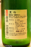 Kikuhime Kurogin (菊姫 黒吟) - seimaibuai of 40%. Very round on the palate but slightly more dry, with a pretty spicy finish - especially when warmed up a little.