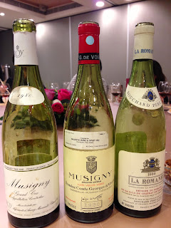 Fourth flight initially was a pair of Musigny, but one of the bottles seemed off, so the birthday boy uncorked his backup bottle. The pair of Musigny was once again supposed to be "twins", because some say that in the old days, Madame Bize-Leroy used to buy her Musigny barrels from Vogüé for her négociant wines...