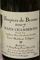 2007 Hospices de Beaune Mazis-Chambertin Cuvée Madeleine Collignon, élevé par Pierre André - a little sweeter, still good concentration on the palate, but somehow less interesting.