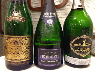 1998 Krug Clos d'Ambonnay - a little more toasty, fresher, more vibrant, and yet more elegant. Pretty sweet, full-bodied on the palate, with a long finish. Later on the nose got to be a little more pungent. The best of the trio by a hair. Despite owning bottles of this über luxury cuvée - and massively overpaying when the damn thing was launched - this was the first time I've tasted any.