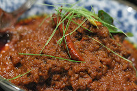 Beef shin rendang - very tender, unlike the cheap versions where they cook it till the beef dries out and becomes chewy. Wonderfully aromatic and tasty, with the unmistakable flavors of roasted dessicated coconut. The chiffonade of lemongrass adds even more fragrance to an already beautiful dish. Given the lack of decent options in Hong Kong, this is definitely the best rendang I've had all year - maybe for the last couple of years.