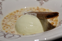 "Milo Bar" w Valrhona 41% chocolate, spiced nuts and puff rice, condensed milk creme chantilly - not bad, but probably the weakest dessert tonight. The Milo Bar has been deconstructed, and you needed to have all the ingredients together in your mouth to be able to reconstruct the familiar taste.