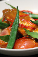 Assam fish - pomfret fillet served with lady fingers, tomatoes and eggplant. Well... I was the last to try this so I got my okra, tomatoes, pineapple and eggplant... and NO FISH. Boo hoo...