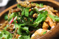 Winged bean salad - one doesn't see winged beans often, and I do like this ingredient. Served with cashews, mint, coriander, chilli, lemongrass and what I thought were deep-fried little fishies (ikan bilis?) even though the menu said prawns. Very nice.