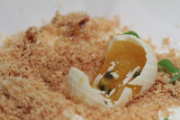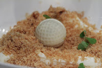 Breaking the shell of the golf ball reveals a passion fruit center. The "sand" added lots of crunchy texture on top of the milky ice cream. A little bit of ginger kept it interesting.