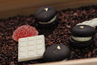Hinoki chocolate box - blood orange jelly, black truffle macarons, and white chocolate with pop rocks inside. I thought the pop rocks resurgence had died down a couple of years ago, but I guess I was wrong...