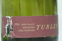 1996 Turley Zinfandel Aida Vineyard - plummy, berries, a little sweet vanilla, sous bois, forest, minty. A little alcoholic. A lovely wine.