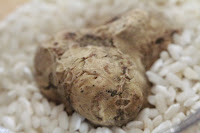 I was getting mentally ready for my Christmas Eve dinner, sitting around in the office, when an idea popped into my head. Why not bring some white truffle home to mom? It's in season and would make a very special treat for her. I could c°ook something simple at home, and just shave the little tuber on top.