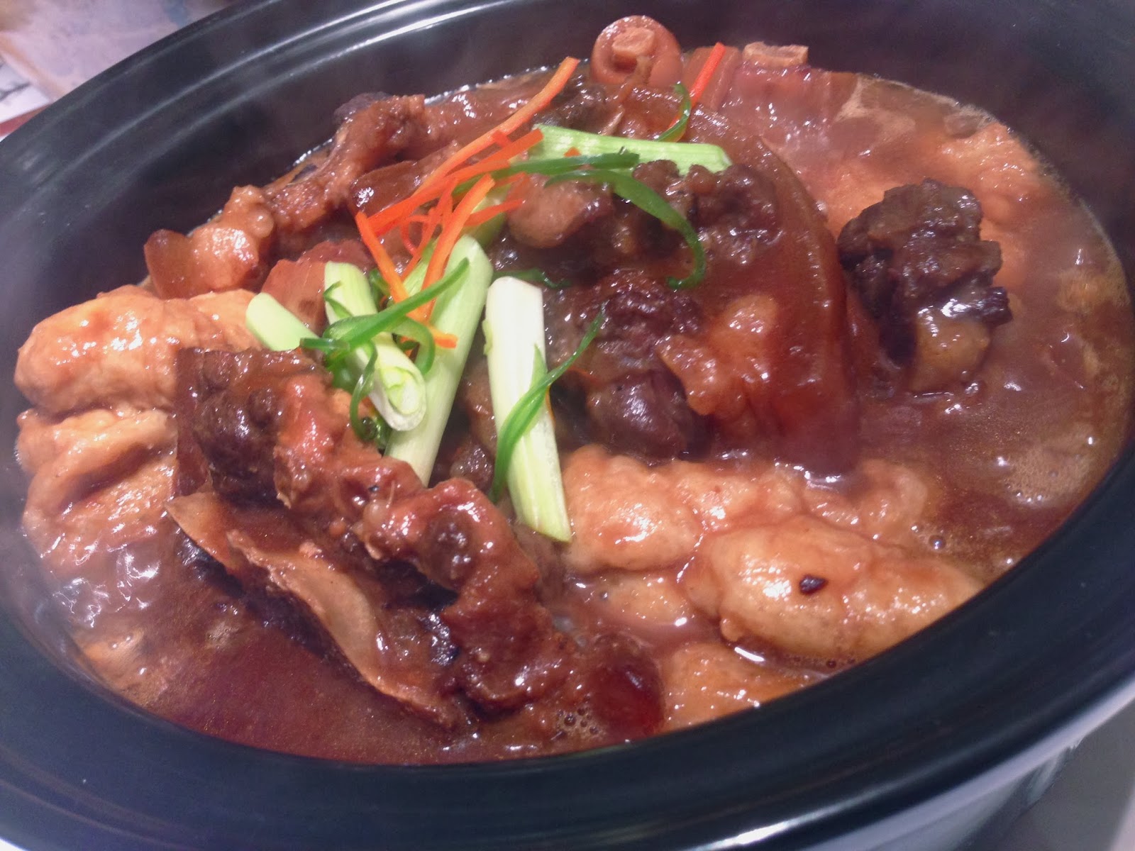 Braised ox tail with skin and shitake mushrooms in casserole (草本炆鮮牛尾) - it's been a long time since I've had oxtail with the skin still attached, and I was really happy to have the chance again. This was delicious... and a little exotic since it was made with shrimp paste. Lots of very soft and yummy gluten, plus shiitake mushrooms.