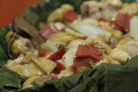 Steamed chicken with 'Kim Wah' ham wrapped in fresh lotus leaf (荷葉雲腿蒸雞) - I've never had this preparation before, and it was kinda disappointing. Yes, the chicken was moist, with mushrooms and ham, but it just wasn't anything special... and I think the crowd had expected more from the lotus leaf. Oh and I'm still scratching my head about why FLM chose to put down 'Kim Wah' in English while calling it 雲腿 in Chinese... since the town of Jinhua isn't anywhere near Yunnan Province...